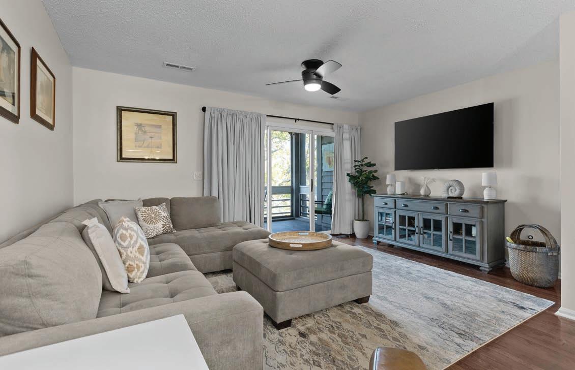 This beautifully updated 2-bedroom, 2.5-bathroom townhome offers a perfect blend of modern upgrades and coastal charm. Recently renovated with luxury vinyl plank flooring and a new HVAC system, this home is just steps from Seabrook Island’s top amenities. The open living and dining area flows into a private porch with views of the lagoon and community pool.