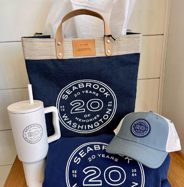 Seabrook G&A is this beach town’s premier logo-wear retailer focusing on beautiful and usable pieces that fuse organic materials with performance to create that classic Seabrook look we love. Seabrook is currently celebrating its 20th anniversary of township and making memories. Seabrook G&A invites you to celebrate with us by offering 20-year anniversary logo-ed gear and accessories. Hoodies, sweatshirts, t-shirts, pint glasses, coffee mugs, tumbler mugs, hats, bags, and tank tops – all to remember your time at the beach.
