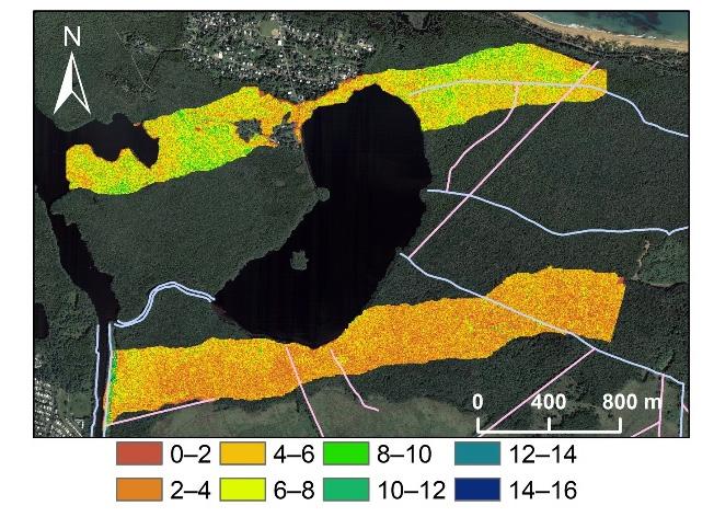 a 188 ha landscape, our LiDAR-detected intact canopy height with a mean of 12.9 m was likely to be true for the intact canopy height.