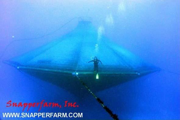 Two 3000 m3 Ocean Spar submerged growout cages (Fig. 2) were purchased from Ocean Spar Technologies Inc. by Snapperfarm, shipped, and assembled from June to July 2002. The two open-ocean cages were located about 3 km south of Culebra