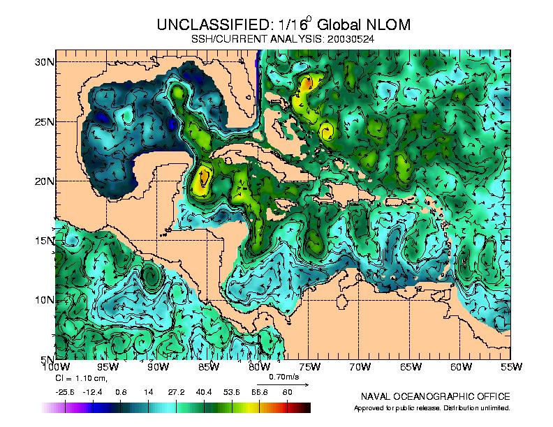 In the North Atlantic, the curl of the wind stress induces a large-scale Sverdrup transport towards the south that is then compensated by the intense northwards flowing Gulf Stream along the east coast of the U.S. The northeastern Caribbean receives part of this large-scale, climatological, southwestward transport; therefore, the mean circulation pattern of the winddriven surface waters around the PR-USVI-BVI shelf is in a west-southwest direction, joining the general western flow of the Caribbean towards Yucatan Strait. The convergence of these two distinct, Caribbean and North Atlantic, dynamical regimes defines our region as a boundary zone, with the northern edge of the green Orinoco plume sometimes referred by local researchers as the Caribbean Front.