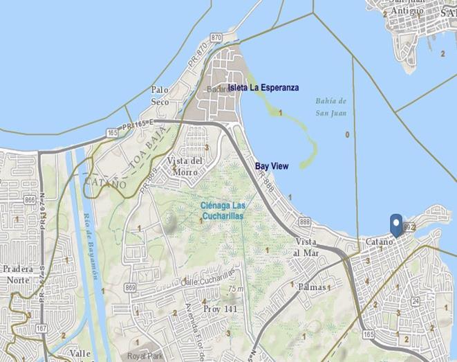 Research has been made to better understand the geographic context of the study area. It is important that we understand the particular physical characteristics of the study site, and the ways in which the area has been transformed dramatically by human activities related to the San Juan harbor. Contemporary as well as old documents, maps and photos were gathered and examined to assess the changes that have occurred through the decades, in particular, the changes that have directly impacted the communities in the Cucharillas, Bay View and La Esperanza area.