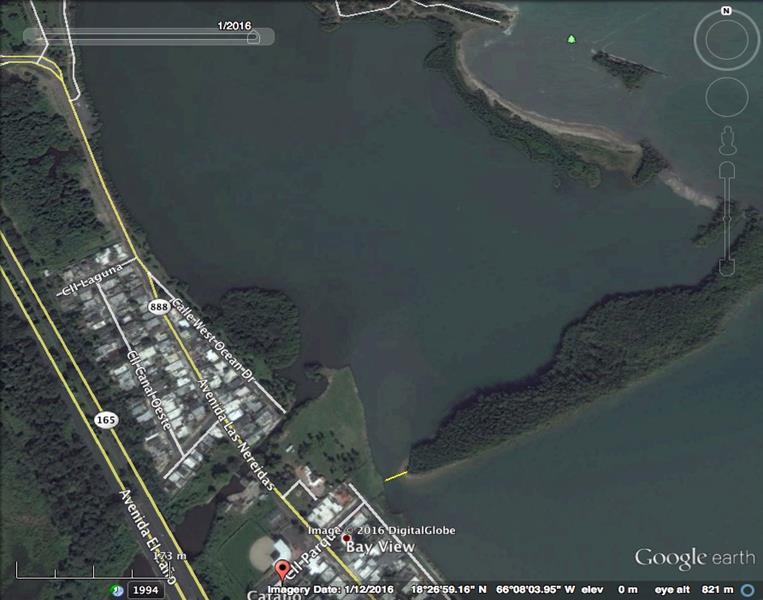 Another concern is that even though the peninsula and the islet creates a protective barrier against storm surge waves and possible tsunamis, in an extraordinary event of rain, the flow of water through Caño La Malaria can increase significantly. The barrier impedes the efficient flow to the bay making residents of Bay View West more vulnerable to floods