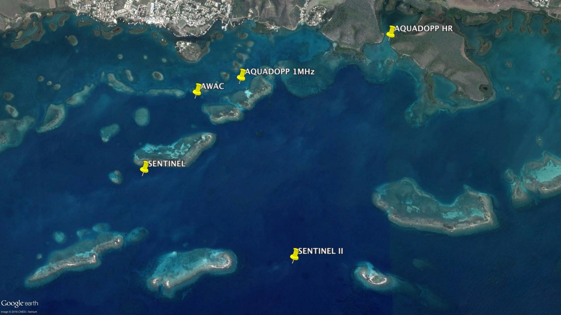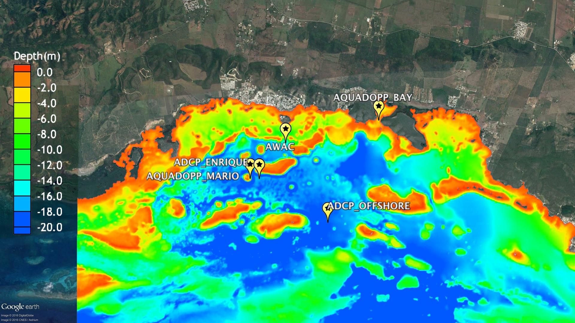 1. Characterize the variability of the carbonate chemistry and hydrodynamic conditions across different habitat types and temporal scales (diurnal to seasonal). Two cruises have been successfully completed with transects during the mornings (6am to 9am) and afternoons (3pm to 6pm) We covered an area of approximately 0.145 m2 Transects covered ~4km offshore and ~5 km from West to East, including the BioBay. The spatial surveys covered the inner (mangroves), middle (reef and seagrasses) and outer areas (deeper (> 15 m) reefs). ADCPs were positioned near all these areas and hydrodynamic conditions were characterized during the cruises. With these we can address the spatial, seasonal and diurnal variability of the carbonate chemistry.