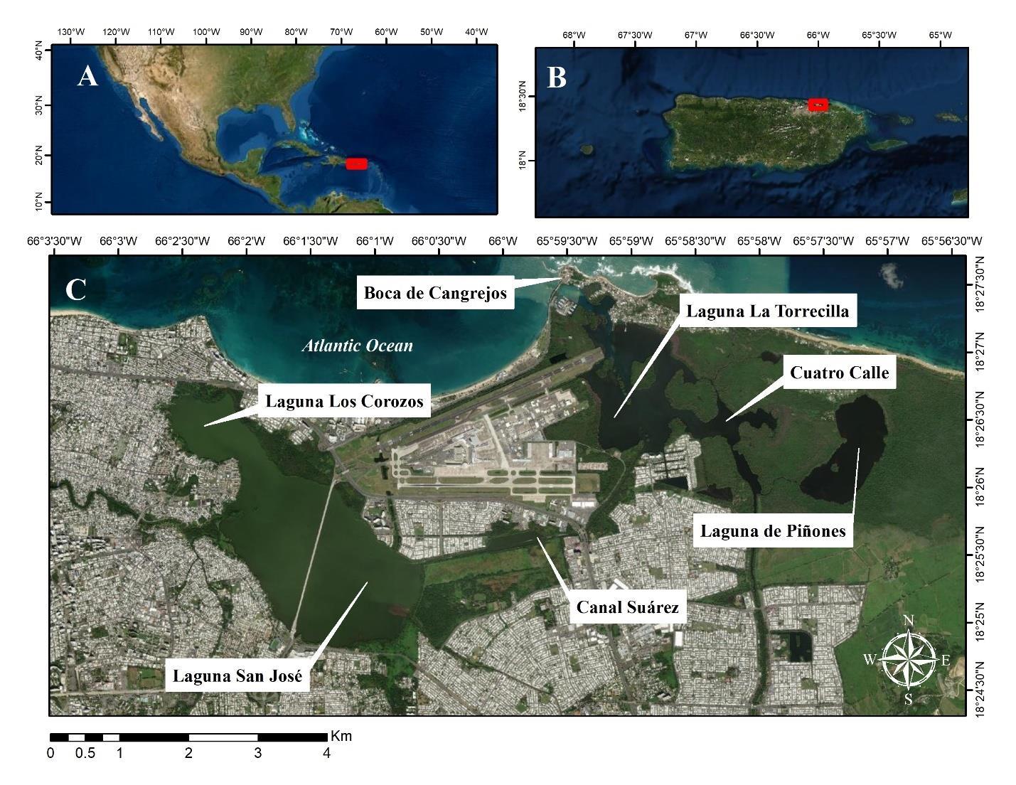 Villanueva, E., Rivera-Herrera, L.J., Rivera-Colón, S., Tacher-Roffe, M., Perez, C.G. and OrtizGomez, C. 2000. Comprehensive conservation and management plan for the San Juan Bay Estuary. San Juan, Puerto Rico: U.S. Army Corps of Engineers. 1:420.