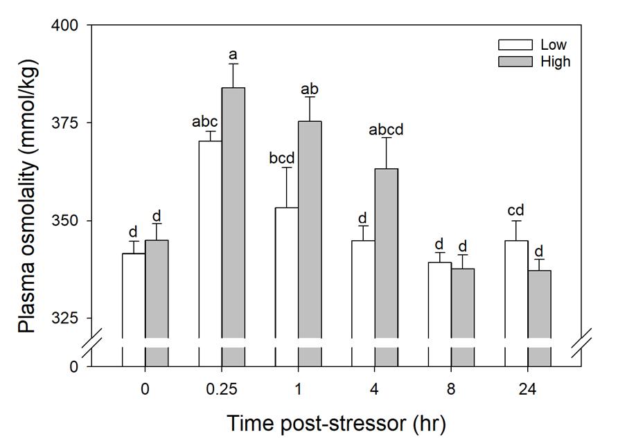 The physiological stress response of fish is similar to many other vertebrates (Wendelaar Bonga 1997; Davis 2006). In teleost fishes, stressors induce primary responses such as cortisol release. In turn, primary responses produce secondary responses, including increased heart rate, permeability of gill epithelia, and increased circulating glucose levels, mobilizing energy to respond to a stressor but leading to greater hydromineral fluxes and depletion of stored energy substrates (Wendelaar Bonga 1997). These variables can be used to quantify intensity and duration of the stressor (Davis 2006), which are important for understanding implications to health and survival. While acute responses to stressors can be beneficial and extend normal adaptive ability, chronic exposure may result in decreased performance or survival (Davis 2006)