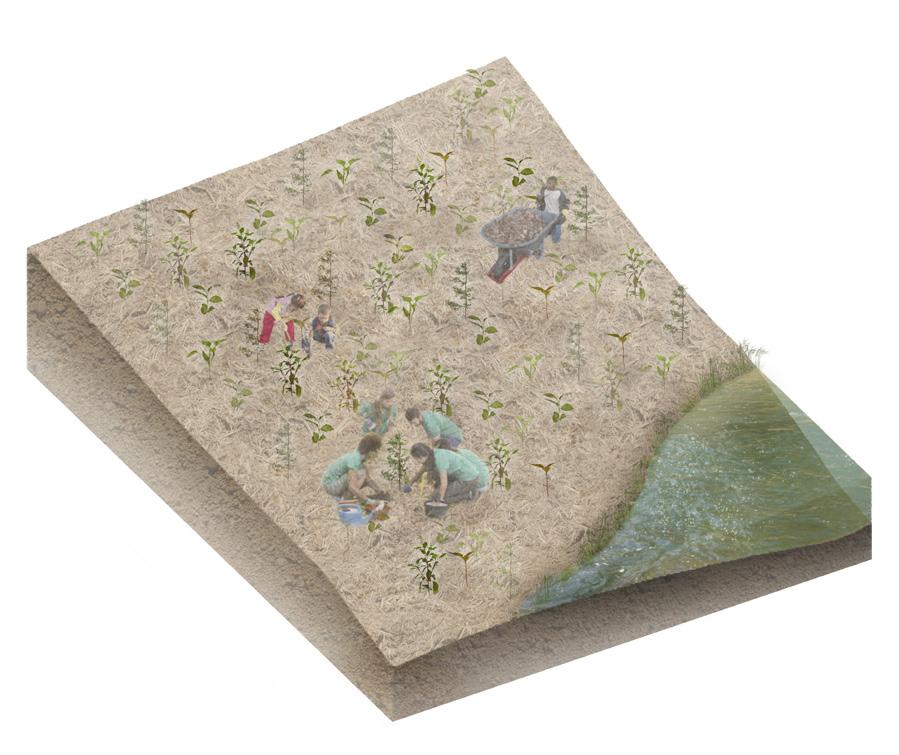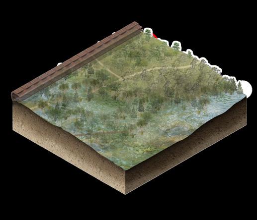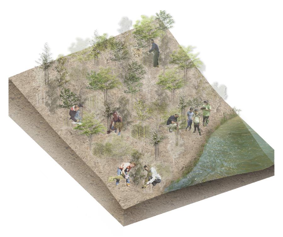 The design, founded on passive systems of ecological self sustainability interprets rewilding as a process to be observed and celebrated over an extended timeframe. Wherein human intervention serves to create the base from which the naturally dictated character of the space can grow, change, and mature over coming decades.