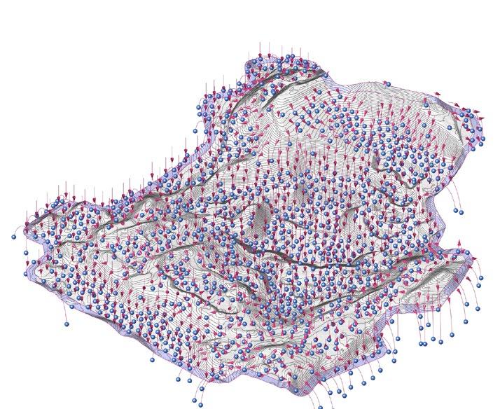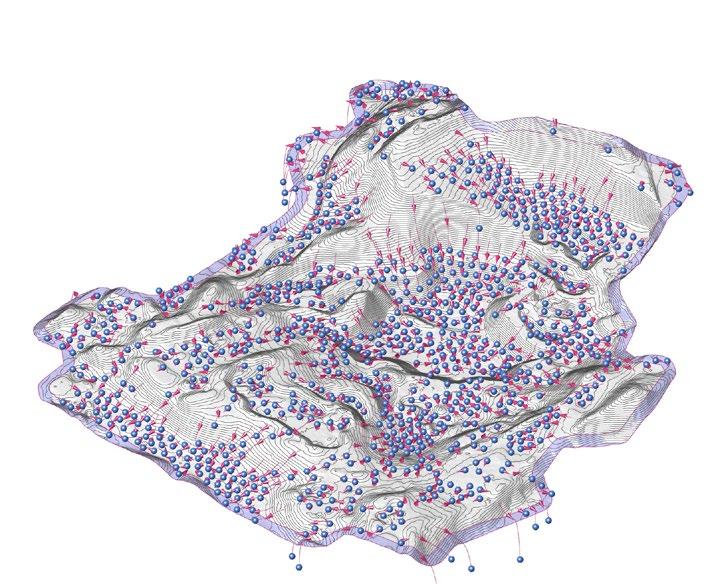 The proposal consists of an interior space dug into the surrounding landscape which houses the main operational systems of the wastewater treatment plant, and a publicly operated and accessed ecosystem on the roof of the structure. The treatment plant’s main objective is to gather and safely treat ground and waste water within the Hawkesbury region before it has the chance to endanger both human and non human inhabitants, achieving this though a network of industrial scale ground water pumps dispersed throughout the region.