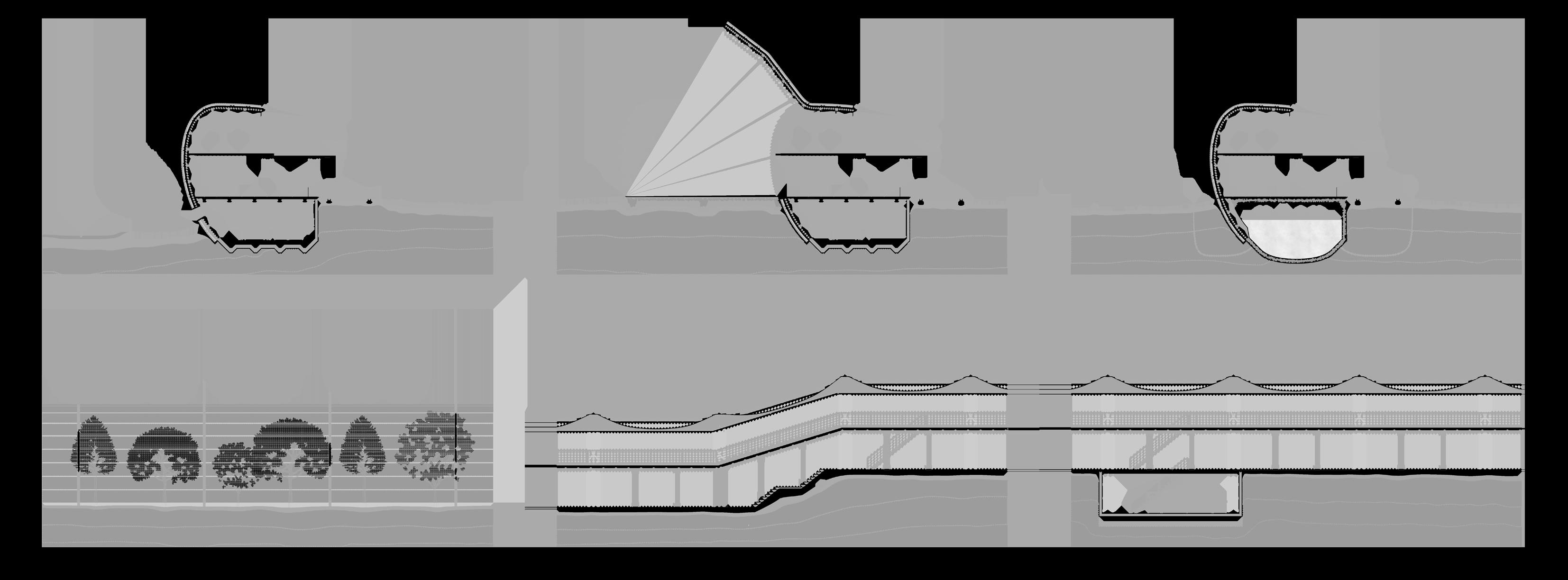 Bounded by more architectural elements which act as both a boundary and point of interaction between the urban and the untamed, built moments of interface, recreation, and amenity are curated around the periphary, selectively breaching into the park at key moments.