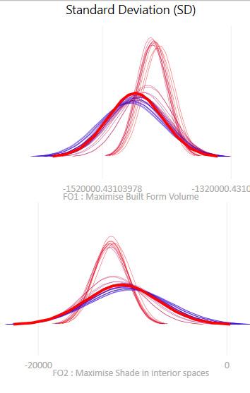 As there are over 200 pareto front ‘optimal results’ a secondary selection process takes place to filter these results into 16 individuals that can be further analysed both visually and numerically.