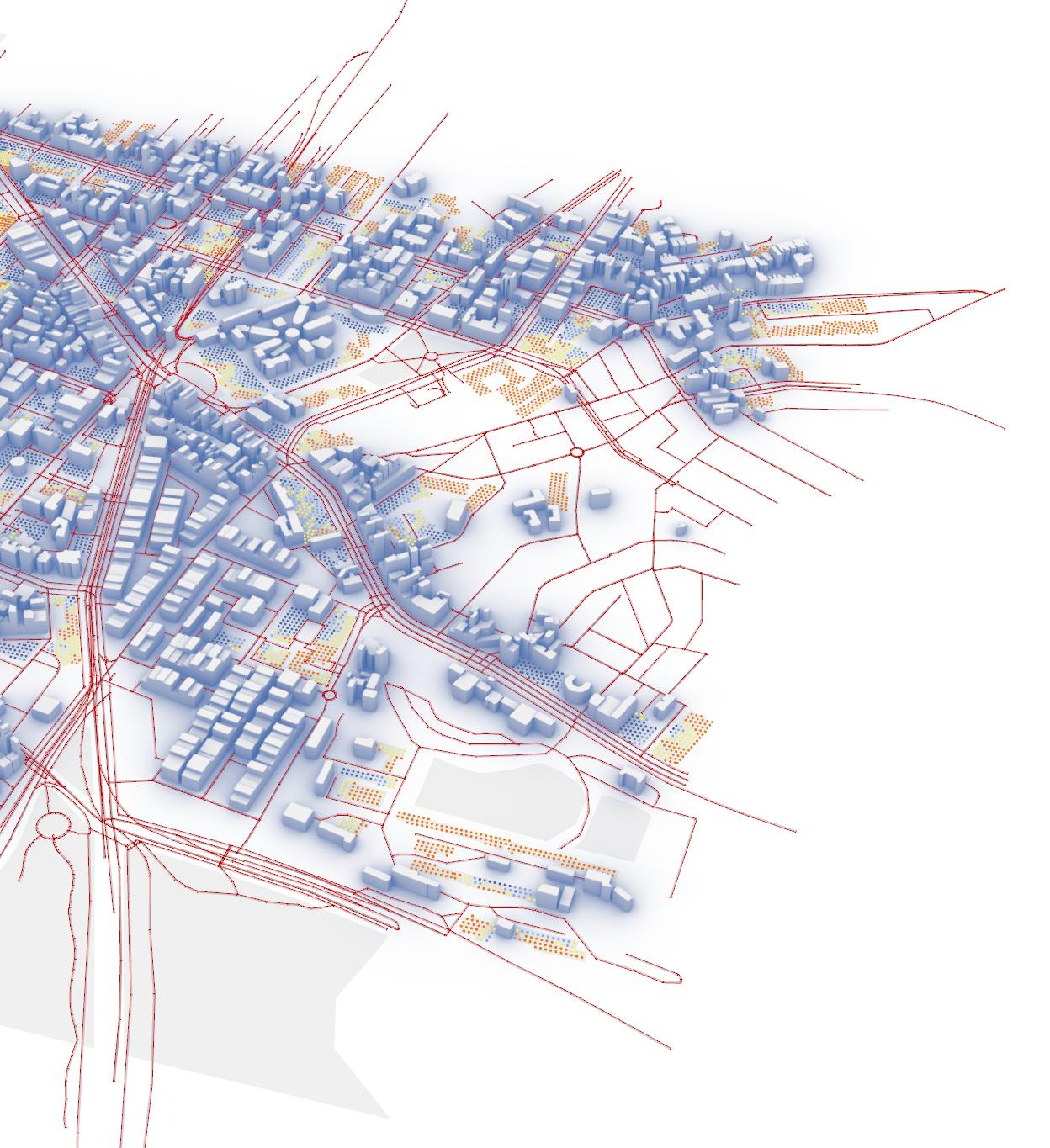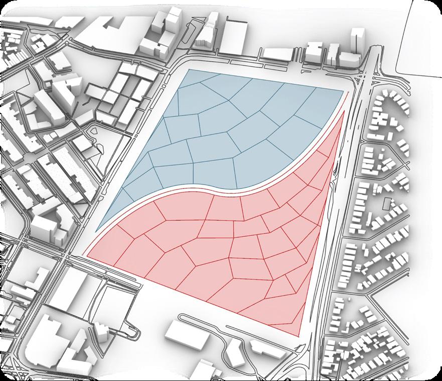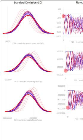 Utilised Grasshopper + Wallacei to establish new residential plots and green spaces of varying sizes and typologies, in the aim of achieving a greater balance between population and amenity.