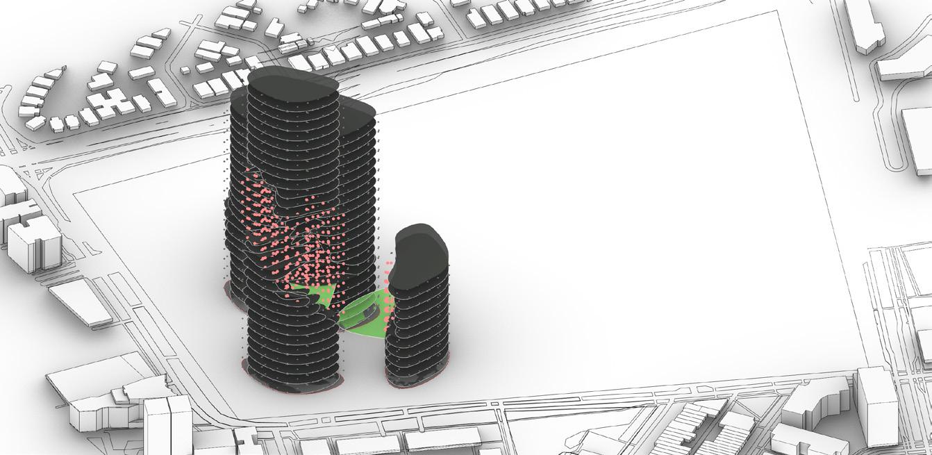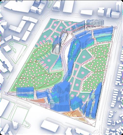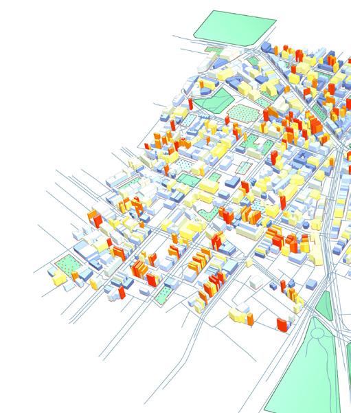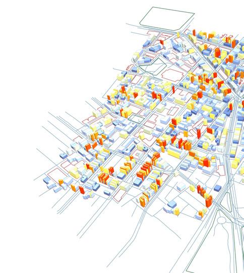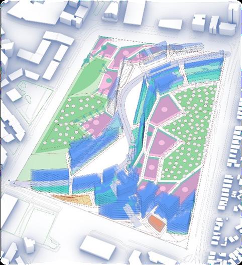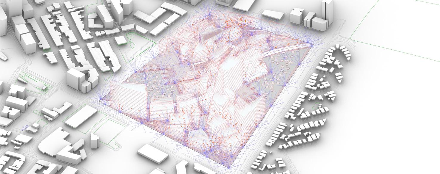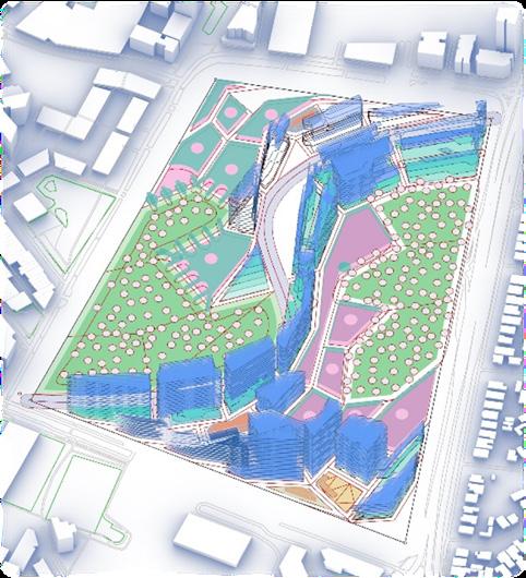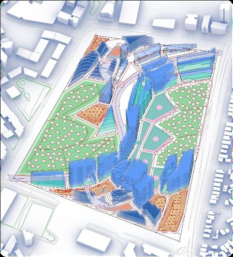 Data is linked to paramater controls to change building densities and establish new green spaces as per the design objectives