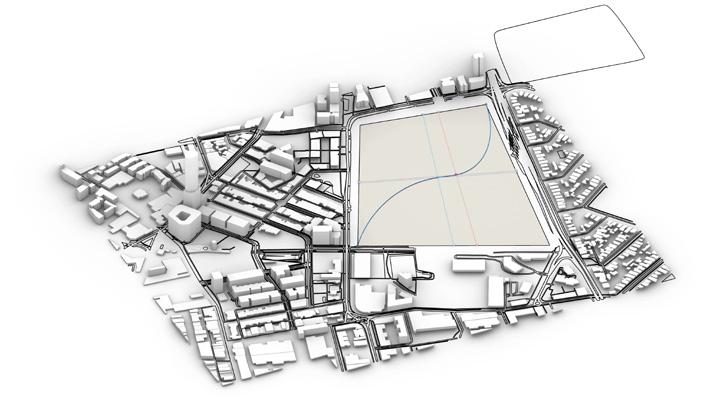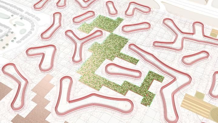 manner of the existing Gadigal Avenue, connecting Gunyama recreation center and Moore Park, two key amenities for the on the shape of the avenue and area of each half, from which connecting lanes are generated to define street networks.