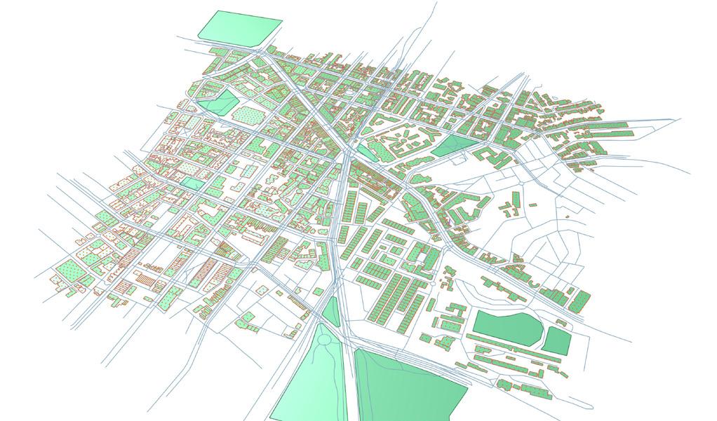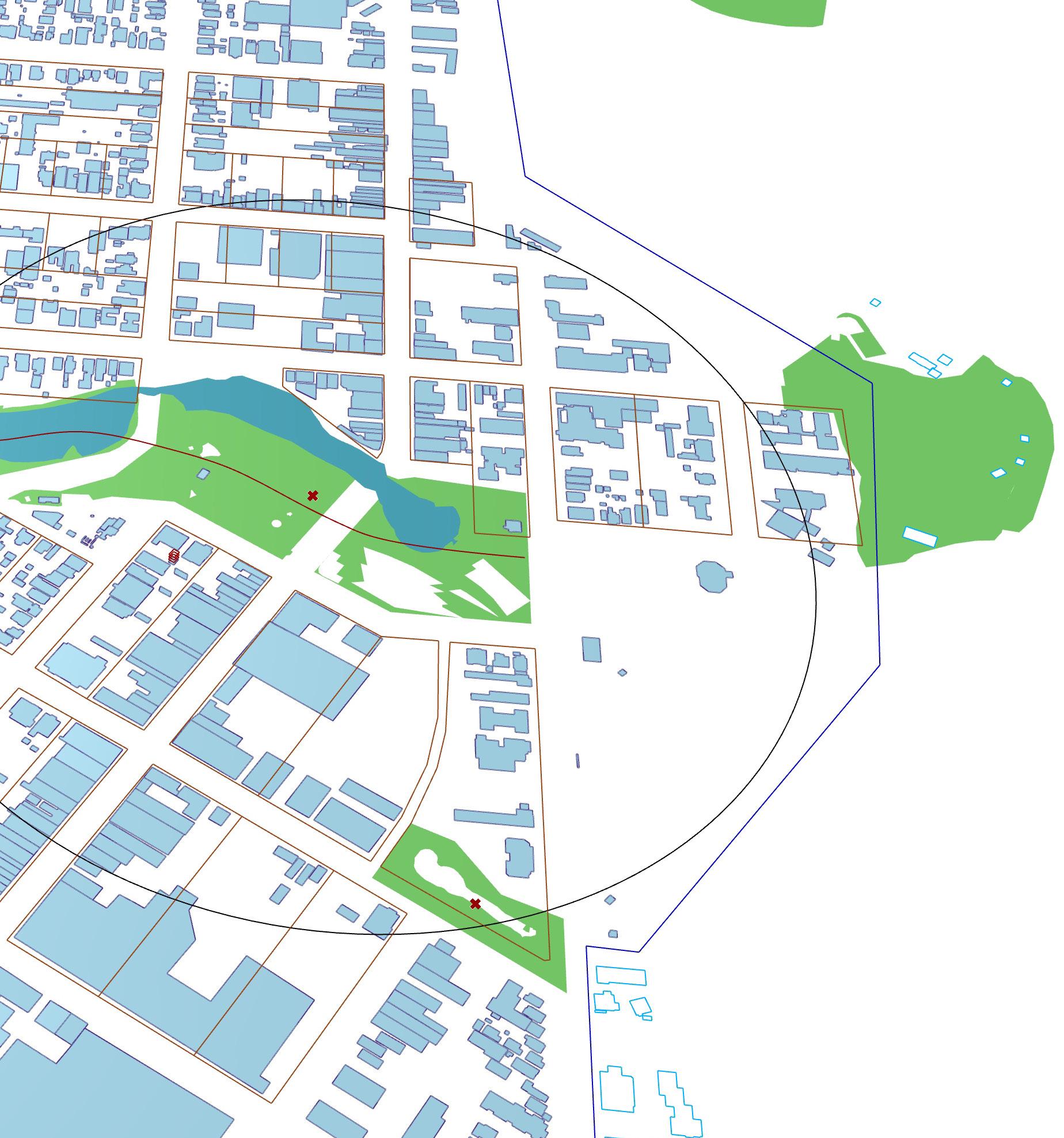 Existing street divisions, building plots, green spaces, and amenity are established utilsing OSM data, providing information on the nature and classification of each of these. From here points of interest are selected to be preserved from changes by the evolutionary engine.