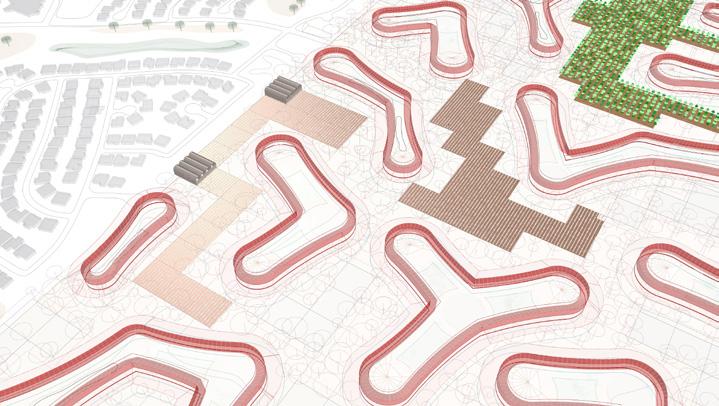 [08] Subterranean Level: Subterranean vehicle circulation routes are established between neighbouring burrows and site entry points, moving pedestrian circulation to shaded sub-terranean layer and reducing social fragmentation