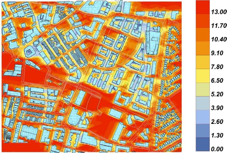 The best performing solution in the optimisation objective saw increased density in a large pocket around Taylore Square, with minimal increases new green spaces but a significantly higher level of sunlight on existing green spaces reducing neighbouring building hights to prevent overshadowing