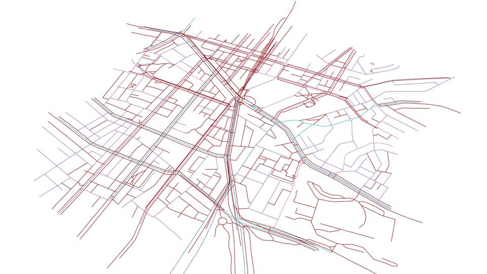 [06] Center Cluster Generation: Urban centers connect to their nearest neighbour, resulting in clusters of varying density and scale. Maximum distances between centers is set to 220 m to ensure sub 3 minute walking distances