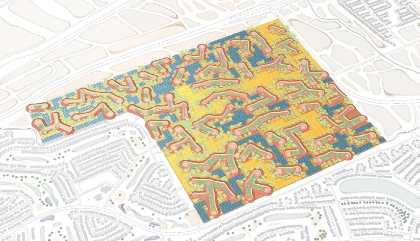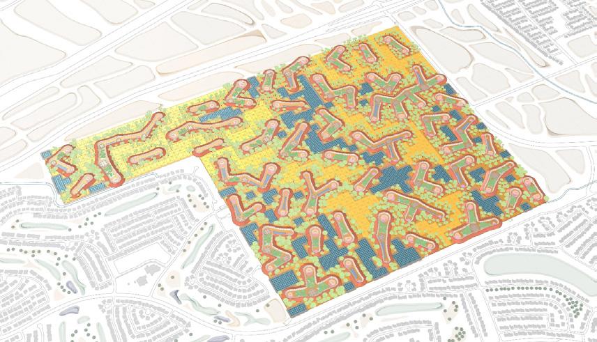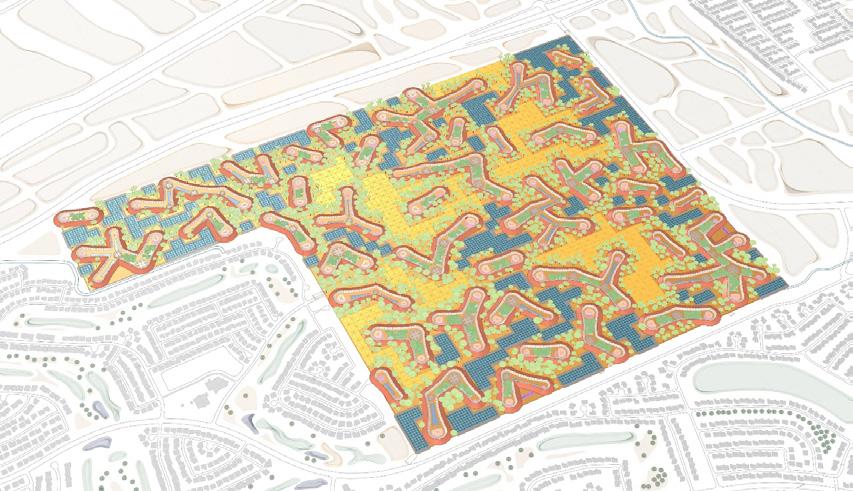 This project utilises the evolutionary engine Wallacei to parametrically re-design the currently highly unsustainable suburb of Corte Belle, an extreme example of Phoenix’s urban unsustainability. Responding to issues of solar exposure, dependance on HVAC system and the automobile, urban heat island, resource and energy sustainability, and social fragmentation.