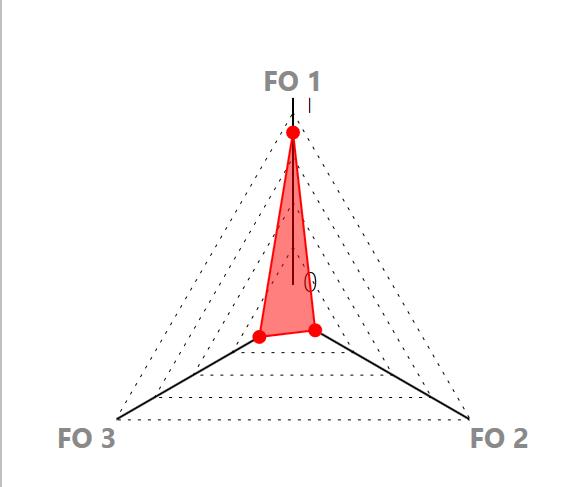 The clustring of solutions as shown below displayed a linear trajectory for how solutions scored and the favouring of objectives 2 + 3.