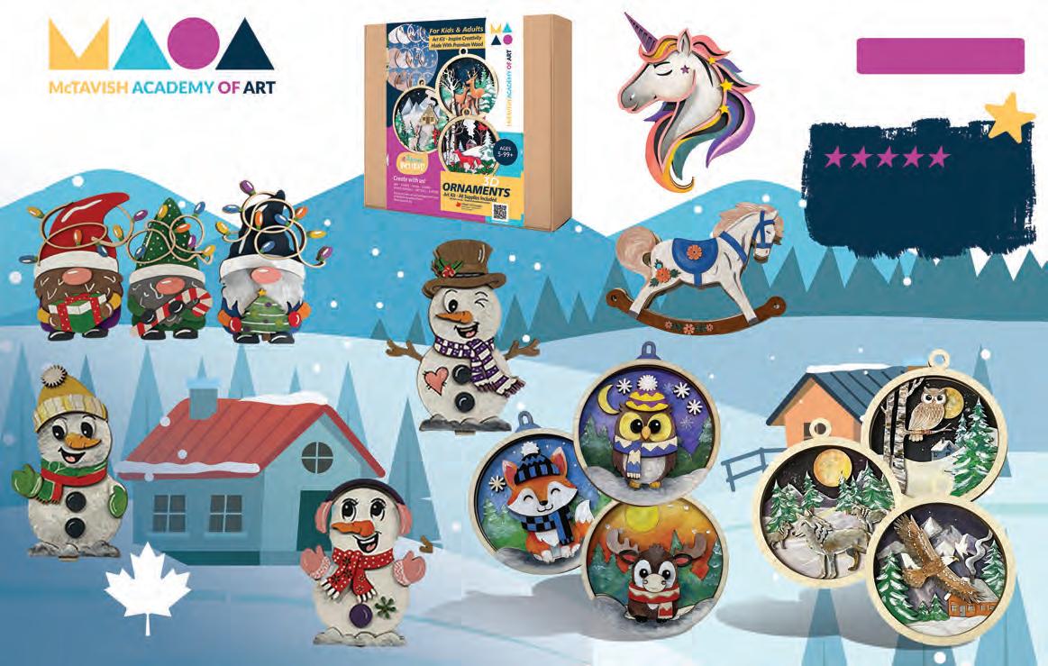 1 MCTAVISH ACADEMY OF ART C reativity for All Ages! Looking for the perfect gift for family and friends? Enjoy our locally crafted art kits, complete with paints, brushes and glue. Made in Canada. Over 40 designs to select from. Pickup and shipping available! 1720 McTavish Rd, North Saanich 778.351.0088 mctavishacademy.ca