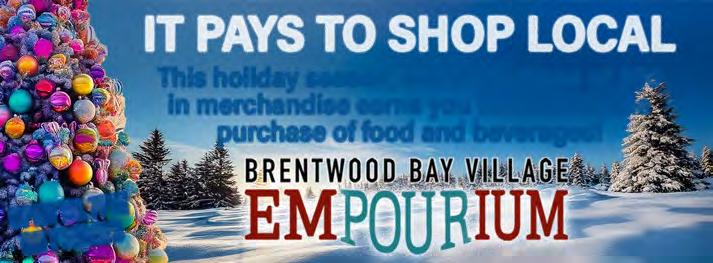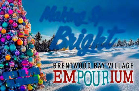 3 BRENTWOOD BAY VILLAGE EMPOURIUM This holiday season, shop our gift selection online or in-store. For every $50 purchase, you’ll earn $5 towards in-store food and beverages. Take a break –treat yourself to a social outing and share some holiday cheer with friends! We’re your local/online holiday headquarters! 7103 W Saanich Rd, Brentwood Bay 778.351.0178 empourium.ca
