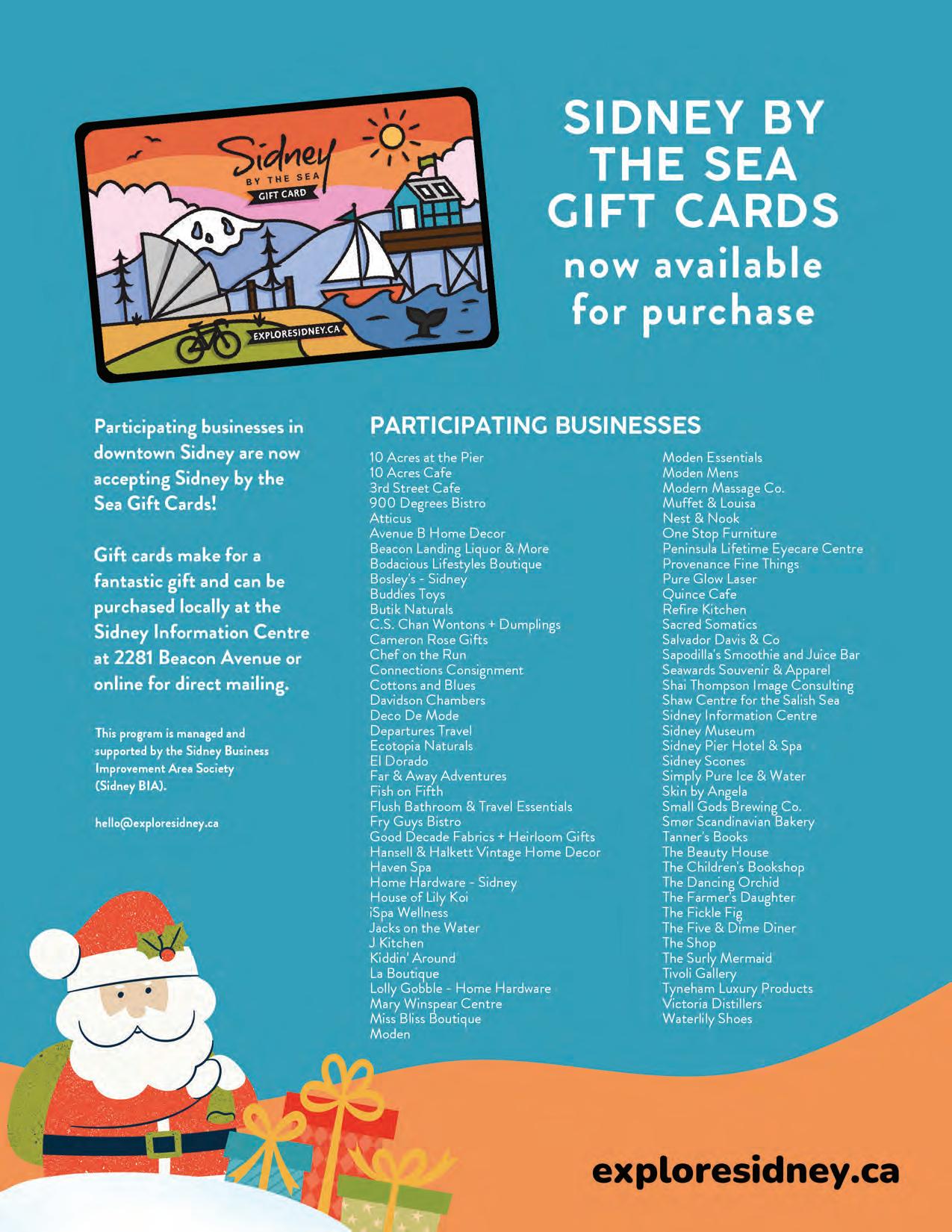 Santa’s Favourite Slipper! One of the great reasons to shop with us this Christmas! Perfect gifts, free gift wrapping and of course, we accept returns and exchanges after Christmas. We accept Sidney by the Sea Gift cards and sell our own in all denominations. 107-2360 Beacon Ave, Sidney 250.656.0011 muffetandlouisa.com