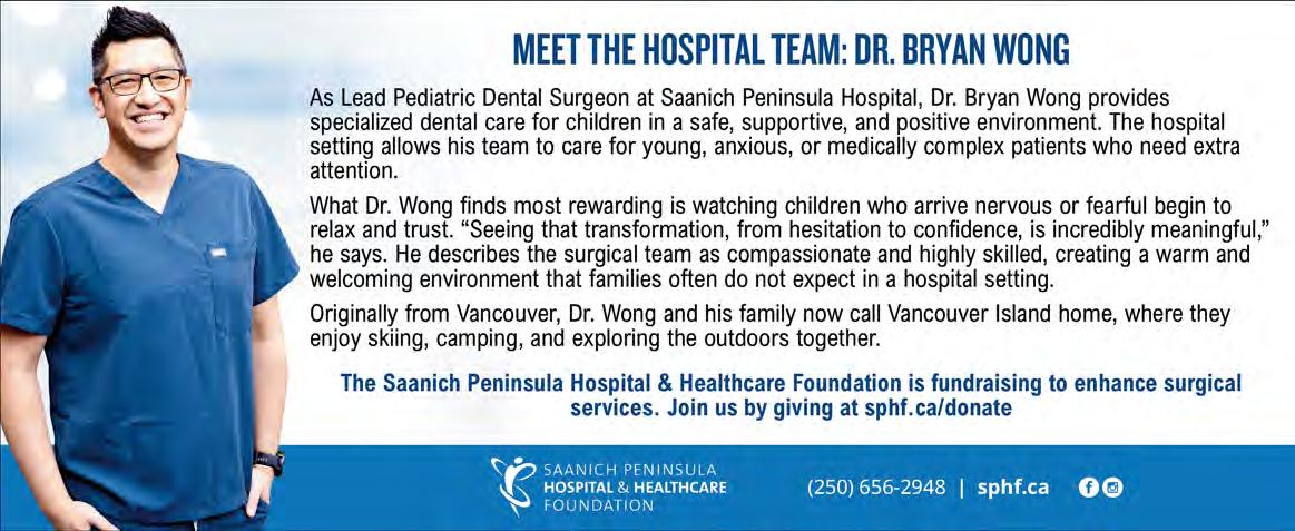 As we step into the holiday season, I find myself pausing a little more, noticing the small things that make this time of year feel special. For me, it has always been about connection – the quiet moments and the unmistakable feeling of belonging. While working on this issue, one story touched me deeply: the weekly community lunch meal at Central Saanich United Church. I’ve admired the work they do, but hearing how people come not just for a warm plate, but for the comfort of familiar faces and genuine welcome, truly struck a chord. When Pamela (pg 54) walks us through the room, you feel it instantly: kindness, acceptance and the sense that you’re exactly where you’re meant to be. I loved hearing about Hilda, a university student who volunteers there, finding friendship, purpose and a way to give back to the community she has grown to love. It reminded me of my own roots back home in the Maritimes, where belonging wasn’t something you earned, it was simply given. I can still picture those Christmas mornings: all of us gathered around, opening our stockings, knowing there would be a special meal waiting later in the day. Those moments weren’t fancy, but they were everything. They were family. They were home.