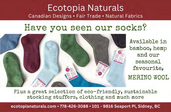 Shop local, dress naturally and gift thoughtfully this Christmas in Sidney, B.C. Discover locally made, eco-friendly treasures. Natural-fibre clothing, soft bamboo socks, cashmere scarves, artisanal soaps, handcrafted jewelry and much more. Where comfort meets conscience. Across from the Sidney Pier Hotel ! 101-9816 Seaport Pl, Sidney 778.426.3088 ecotopianaturals.com