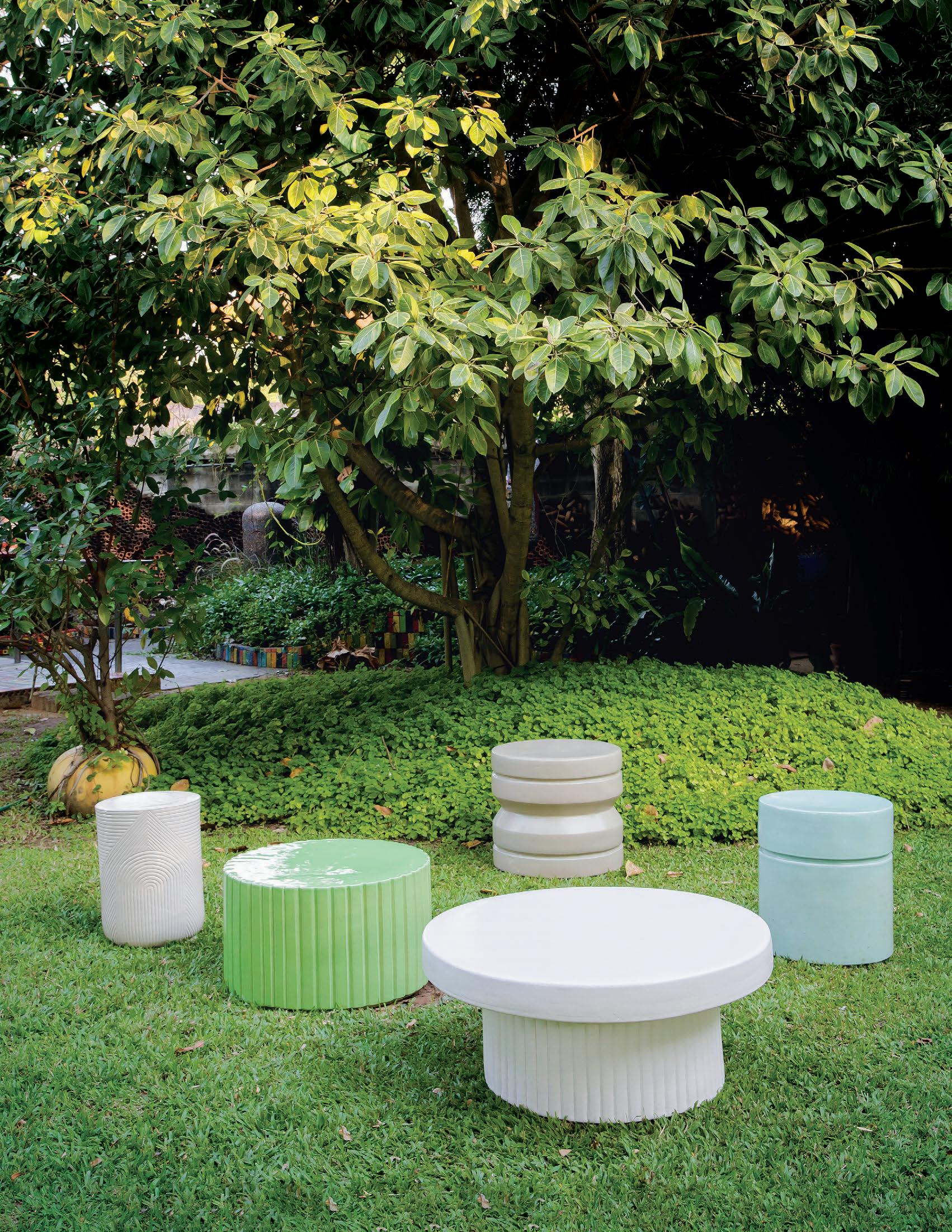 MATERIALS Handmade lightweight concrete top, reclaimed teak bases