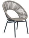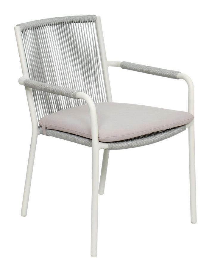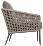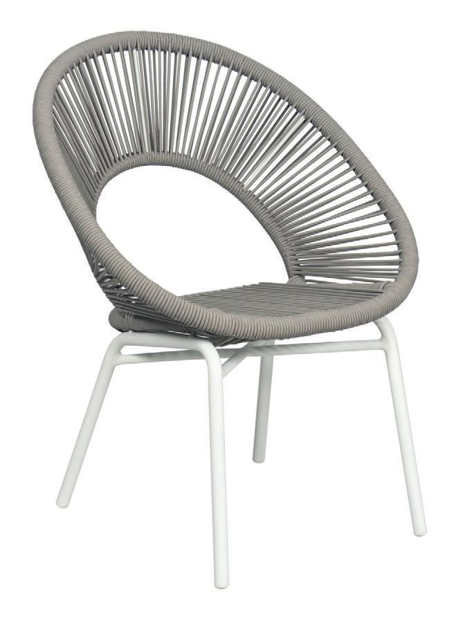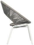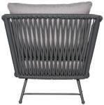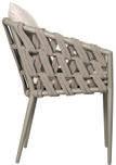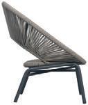 MATERIALS Dark Gray powder-coated aluminum frame, Dark Pebble polypropylene rope weave, latex seat webbing sealed in polyester resin with UV stabilizer, Black nylon glides; polyurethane foam seat cushion with Texsilk Semai S21 Gray zippered cover