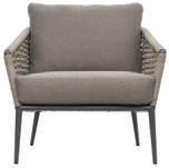 MATERIALS Dark Gray powder-coated aluminum frame, Cardamom Taupe polypropylene rope weave, nylon glides; regular foam seat cushion with raincoat, crushed QuickDry foam back pillow, Regency Taupe polyester zippered covers