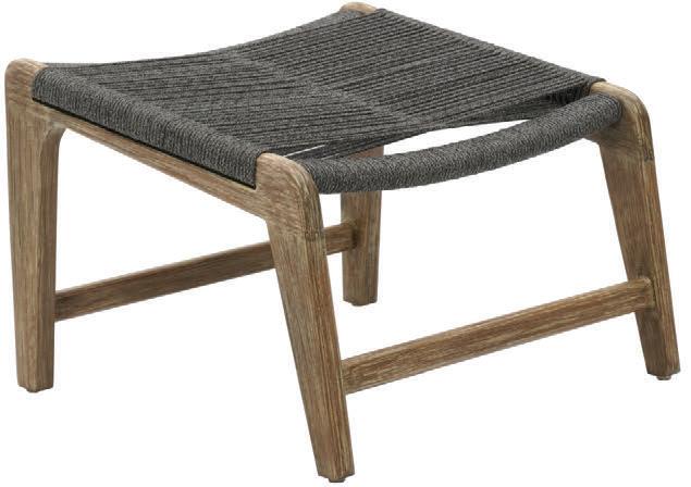 MATERIALS Dark Gray powder-coated aluminum frame, Dove Gray polypropylene rope weave, mixed-crushed QuickDry foam cushions with raincoat and Regency Miramar Super White zippered covers, Black nylon glides