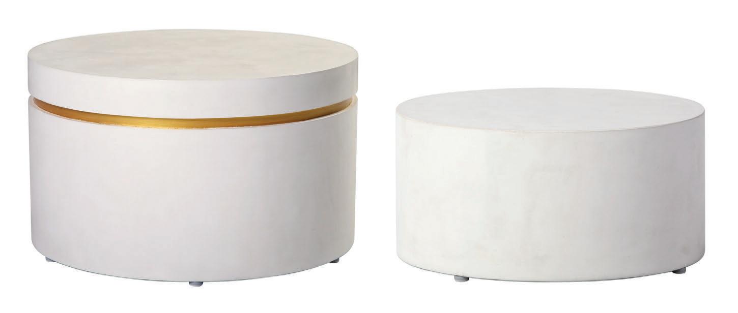 MATERIALS Handmade lightweight concrete top, reclaimed teak base, nylon glides