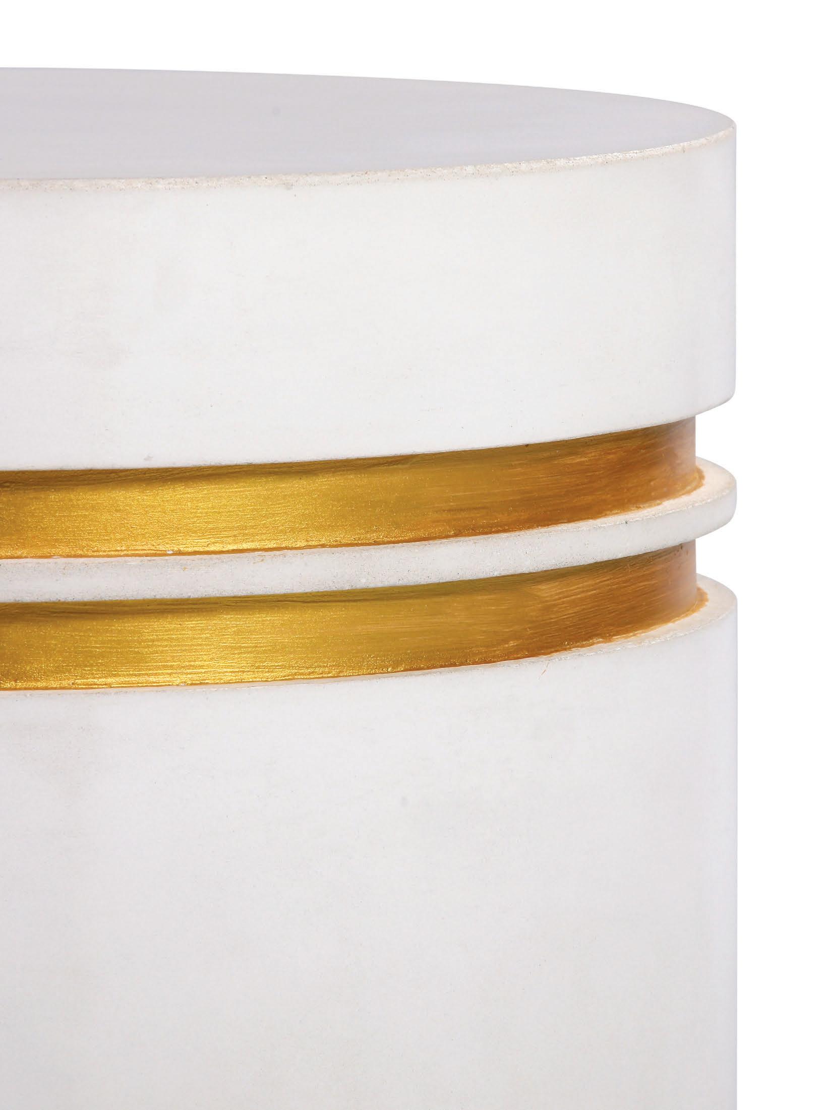 MATERIALS Handmade lightweight concrete, metallic gold lacquer, nylon glides
