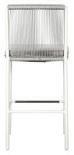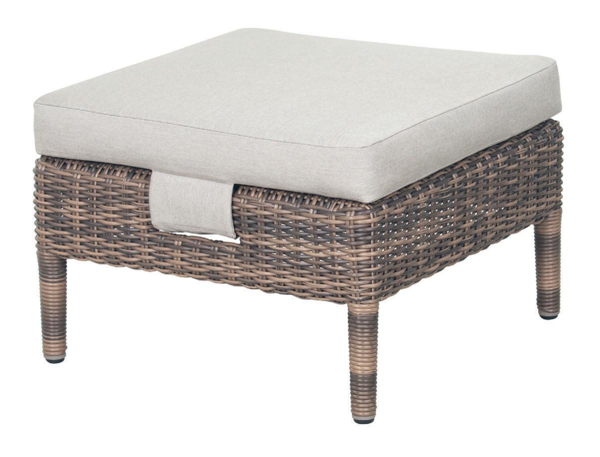 brushed stainless steel footrest, polypropylene rope weave, black nylon glides; regular foam cushion with raincoat and Regency String spun polyester zippered cover with Velcro strap