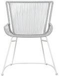 Powder-coated galvanized steel frame, polypropylene rope weave, black nylon glides