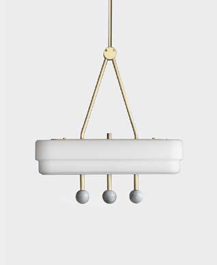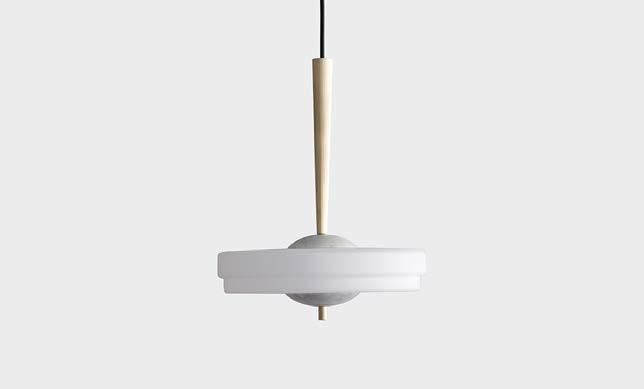 Suspended from a single brass drop rod the Spate pendant produces a soft luxurious light through its stepped opal glass shade. Highlighted green or white marble orbs create an illuminated focal point.