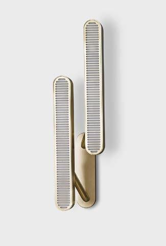 With two slender opposing arms the Colt Double Wall Light will lend sophistication to any room. Matching machined brass grills filter light from opal diffusers and echo the elegant curves of the brass wall plate.
