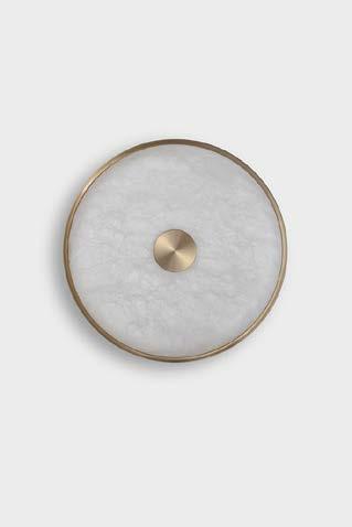 Bide Wall Light Large: Size: Dia:360mm Projection:65mm. Integral Mains Dimmable Driver. 6Watt integral LED. Suitable for bathrooms: IP44 Materials: Brass & Alabaster
