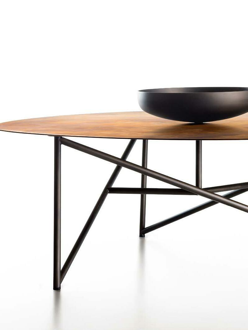 A crossroads between fine craftsmanship, advanced technology and aesthetic research, the collection interprets the potential of metal as a flexible material that becomes a recurring presence within the home. Thanks to the involvement of designers that refine their projects at our company workshops with the irreplaceable expertise of in-house De Castelli craftsmen, the current state of furniture production offers us a new vision of the residential landscape, where the skilful, even painstaking working of metal is translated into original expressions of the material. The objects in this catalogue reveal a noble, deep soul, rejecting flashy solutions while aiming straight for the very substance of a material, revealed page after page, oxidation after oxidation, in endless variations of itself.