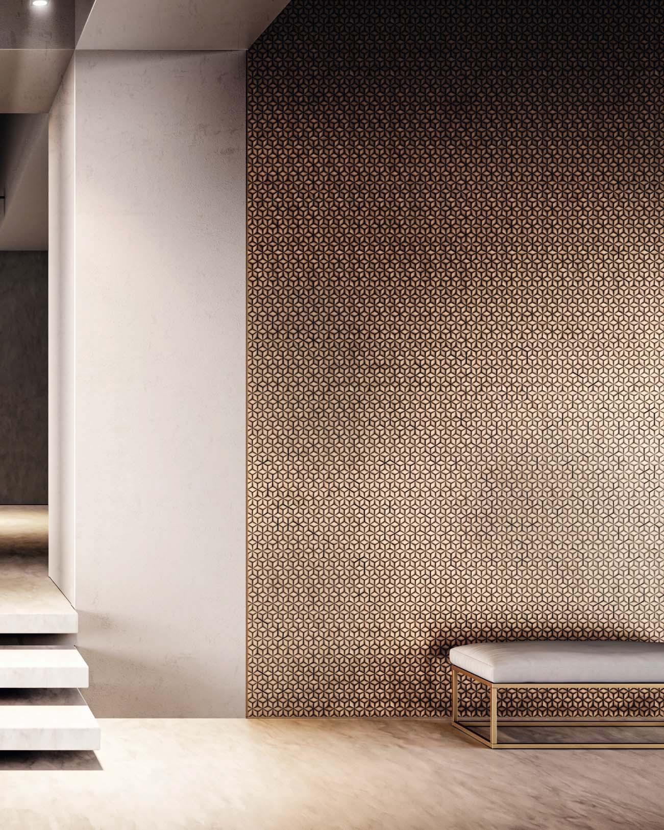 Formal geometric shapes for a timeless covering. Geometrie formali per un rivestimento senza tempo.