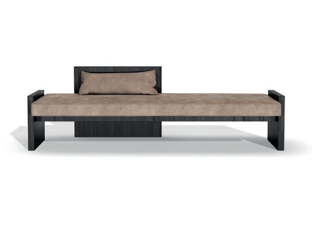 Con le sue forme rigorose e pulite riesce a inserirsi in ogni contesto bilanciandolo con la sua grande sobrietà. Questo gioco di volumi minimali è impreziosito e stemperato dalla morbidezza del legno e dall’utilizzo di pelli e tessuti estremamente confortevoli. Un oggetto versatile per ogni atmosfera.