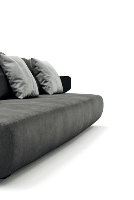 Due sono gli elementi caratterizzanti del divano che si fondono, vivono insieme nonostante le loro diversità e grazie alle loro similitudini.