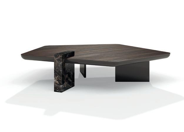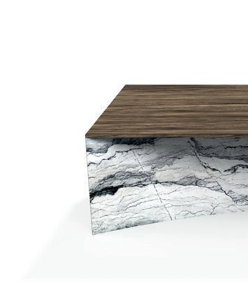 Generata da un segno che quasi capovolto, permette di avere due tipologie di strutture su cui si incastonano top in materiali differenti. Uno stesso linguaggio per un mix di elementi versatile e raffinato.
