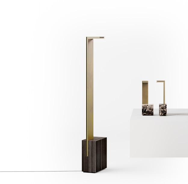 Un tratto decorativo minimale e una grande ricerca sulla bellezza dei materiali caratterizza le lampade da terra e da tavolo Ellamp.