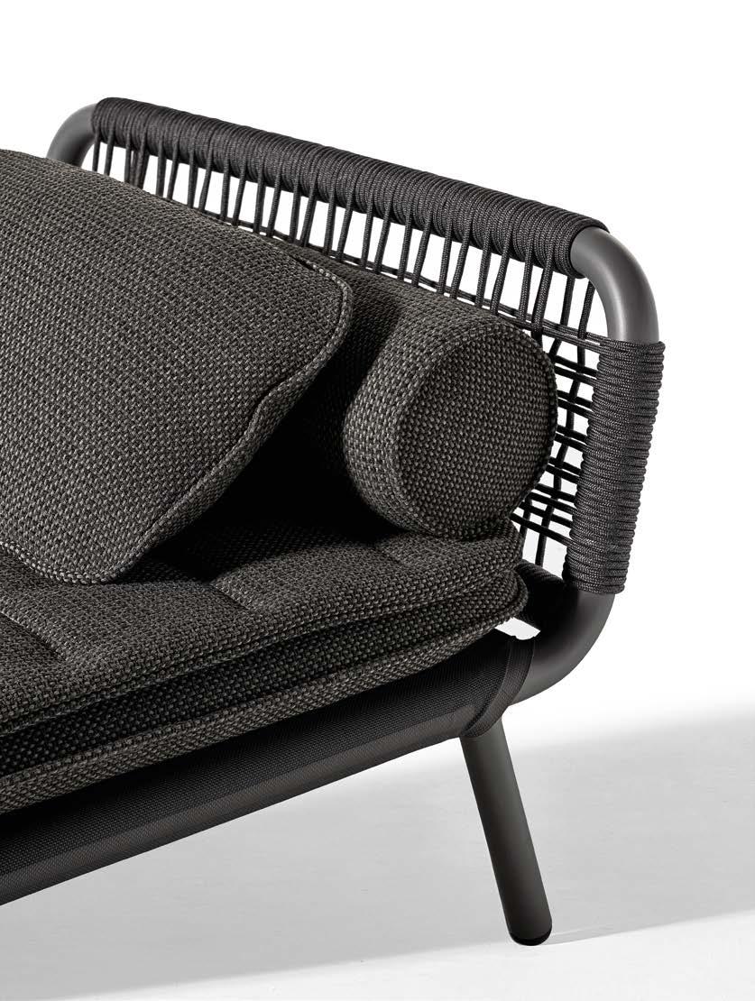 Polypropylene rope is used outdoors as well as in nautical environment. The properties of polypropylene are tenacity, resistance to abrasion and adverse weather conditions. Polypropylene rope is used for the wicker work that characterizes the Open Air collection products. They are mass colored, antistatic, mold proof, stain proof, resistant to UV rays, to salt and chlorine. They are also 100% recyclable.