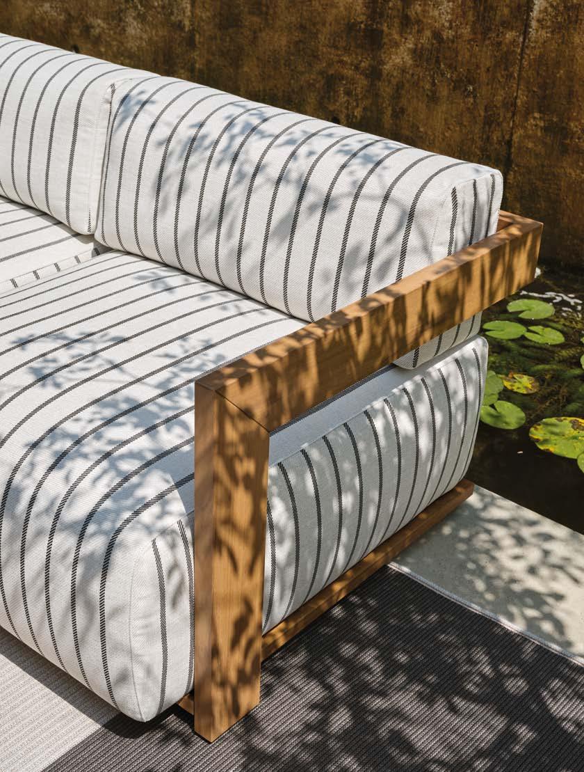 A precious wood that grows in several central equatorial African areas, it is mainly indicated for outdoor furniture, with its strong resistance to temperature changes, humidity and weather. Its distinctive feature is the naturalness, highlighted by colour variations, shades and original veinings. These are not to be considered faults, rather distinctive features that determine the uniqueness and natural beauty of the material. The exposure to atmospheric agents can gradually create a silver-grey patina on the wood surface, the result of a natural maturation process of the material. The protective varnish that is applied adds a waterproof coating that also protects against color changes and mould. This particular coating protects the furniture against indirect exposure to adverse weather conditions.