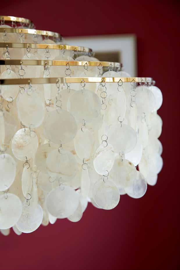 In terms of materials, Panton originally worked with metal discs but was curious to create something brand new and during a visit to Malaysia, he found what he was looking for: delicate seashells with a vibrant, pearly texture.