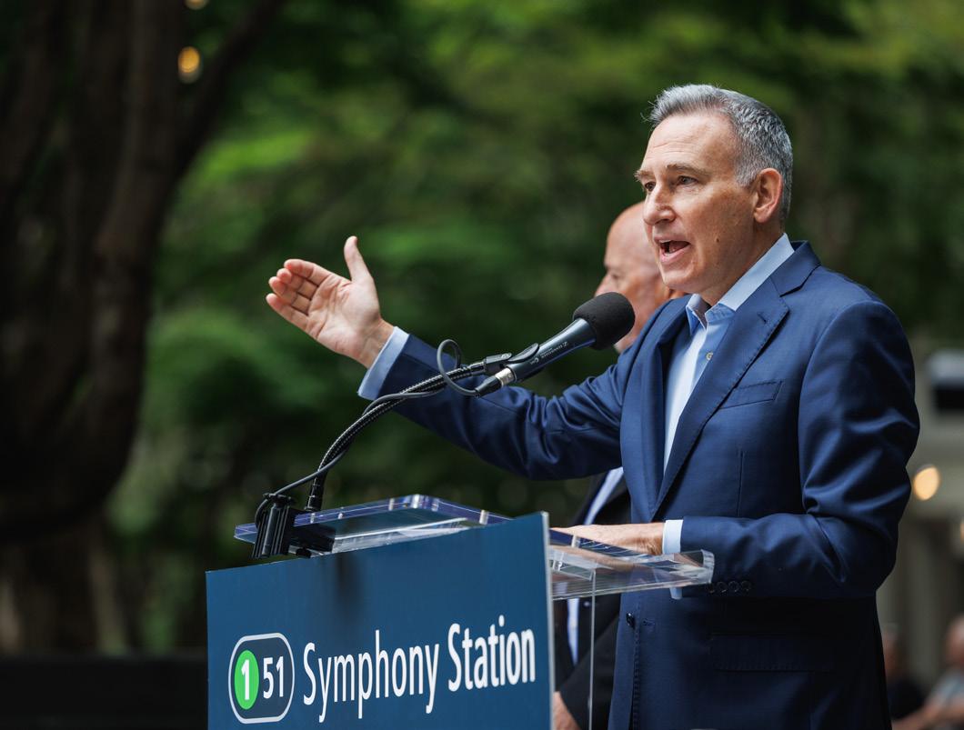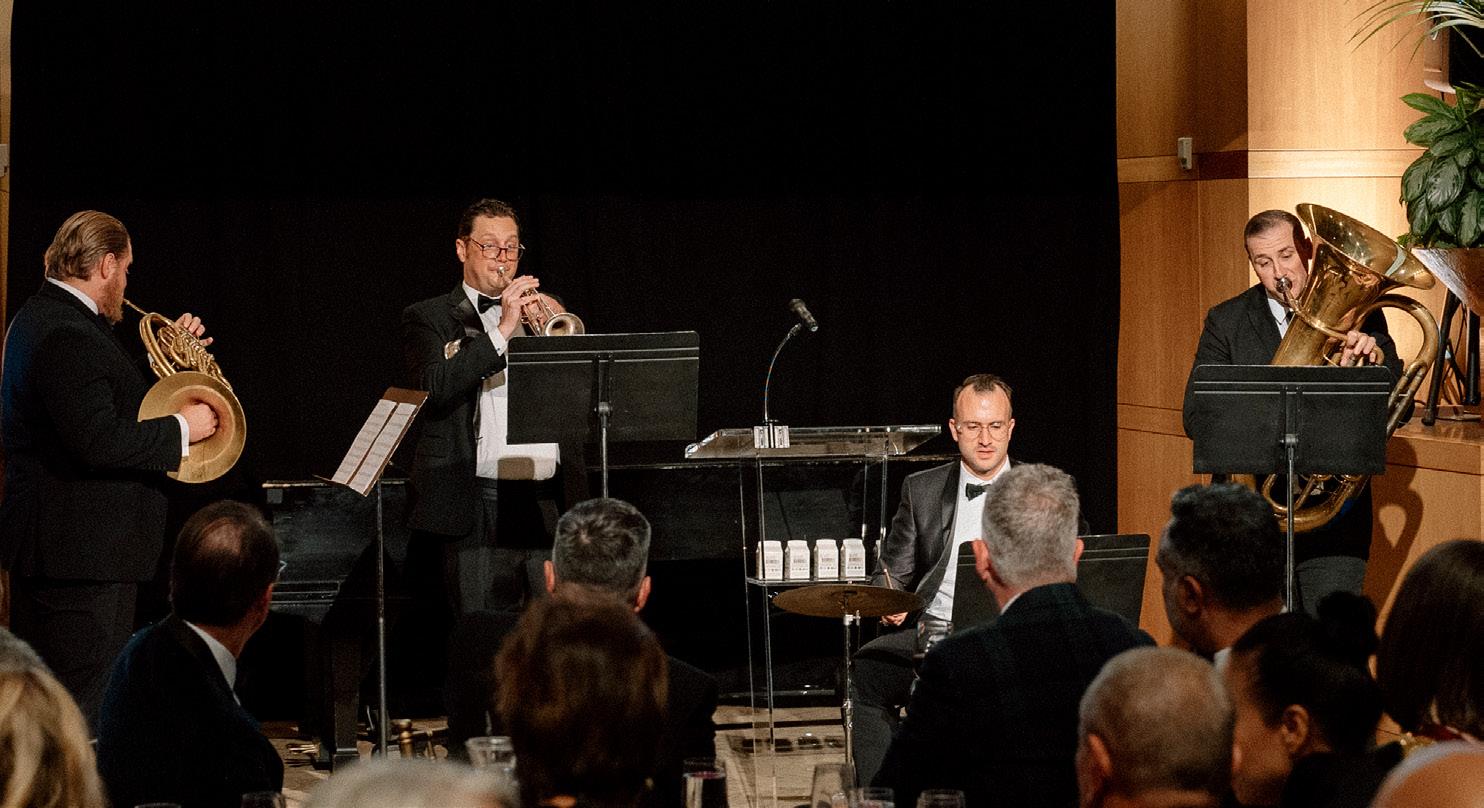 1 Pianist Khatia Buniatishvili thanking the audience after her Opening Night performance of George Gershwin’s Rhapsody in Blue. 2 ThenKing County Executive Dow Constantine spoke as part of the Symphony Station naming ceremony. 3 At the Opening Night Party, guests enjoyed specialty cocktails and delicious bites from local restaurants as well as music by DJ Mike Illvester. 4 Students attending Open Rehearsals have the opportunity to witness the orchestra at work. 5 A Seattle Symphony brass quintet performed in front of Symphony Station to celebrate its naming. 6 Judy Runstad and Benaroya Hall Board Chair Leslie Jackson Chihuly, celebrating the launch of the Amplify capital campaign with other Symphony supporters in the Sky Lobby at the Residences at Rainier Square. 1 2 5 6 3 4