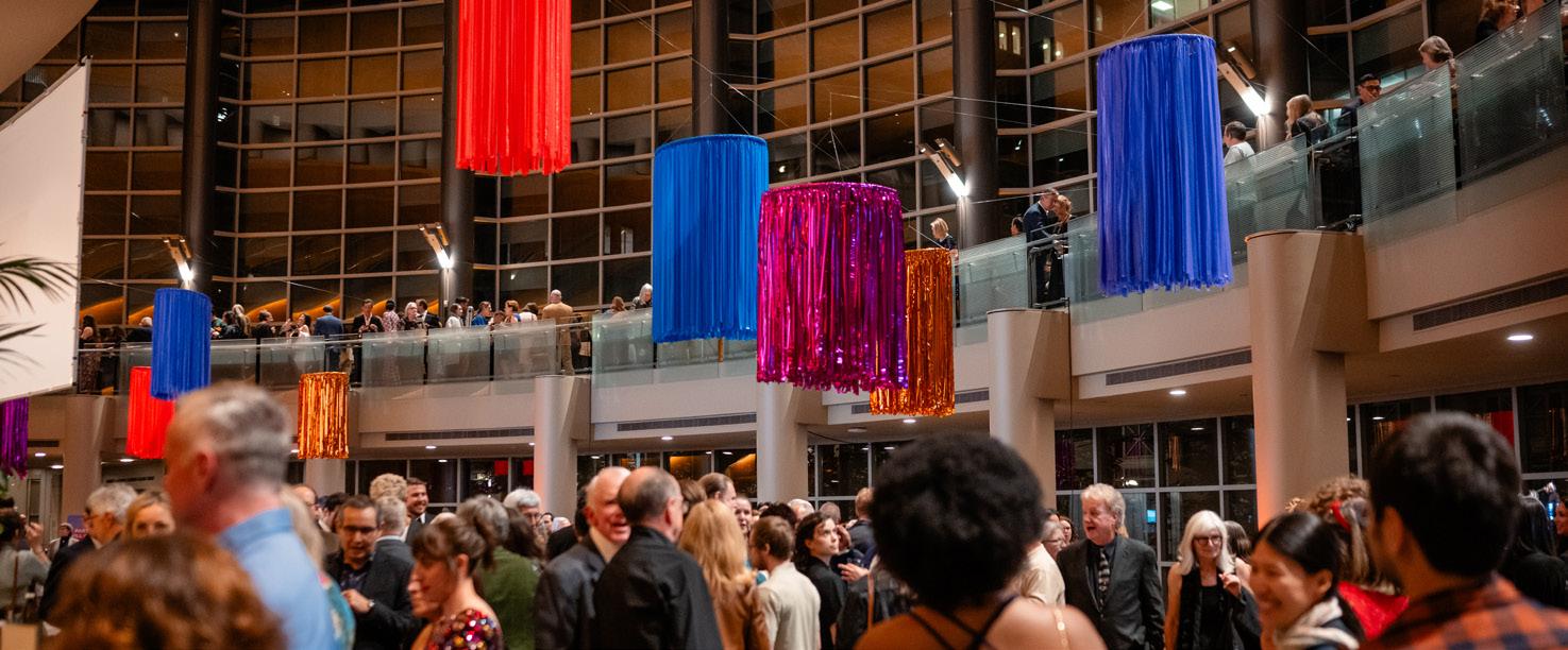 1 Conductor Sarah Hicks dressed up in glittering pink to present Barbie The Movie: In Concert. 2 Guests enjoying cocktail hour on the Davis/Grinstein Promenade at the Seattle Symphony’s inaugural Lunar New Year Gala. 3 & 4 The Symphony’s presentation of Marvel Studios’ Black Panther in Concert included guest speakers from Speak With Purpose as well as performances in Octave 9: Raisbeck Music Center and the Samuel & Althea Stroum Grand Lobby. 5 The International Lion Dance & Martial Arts Team gave an exciting and interactive performance at the start of the evening at the Lunar New Year Gala.